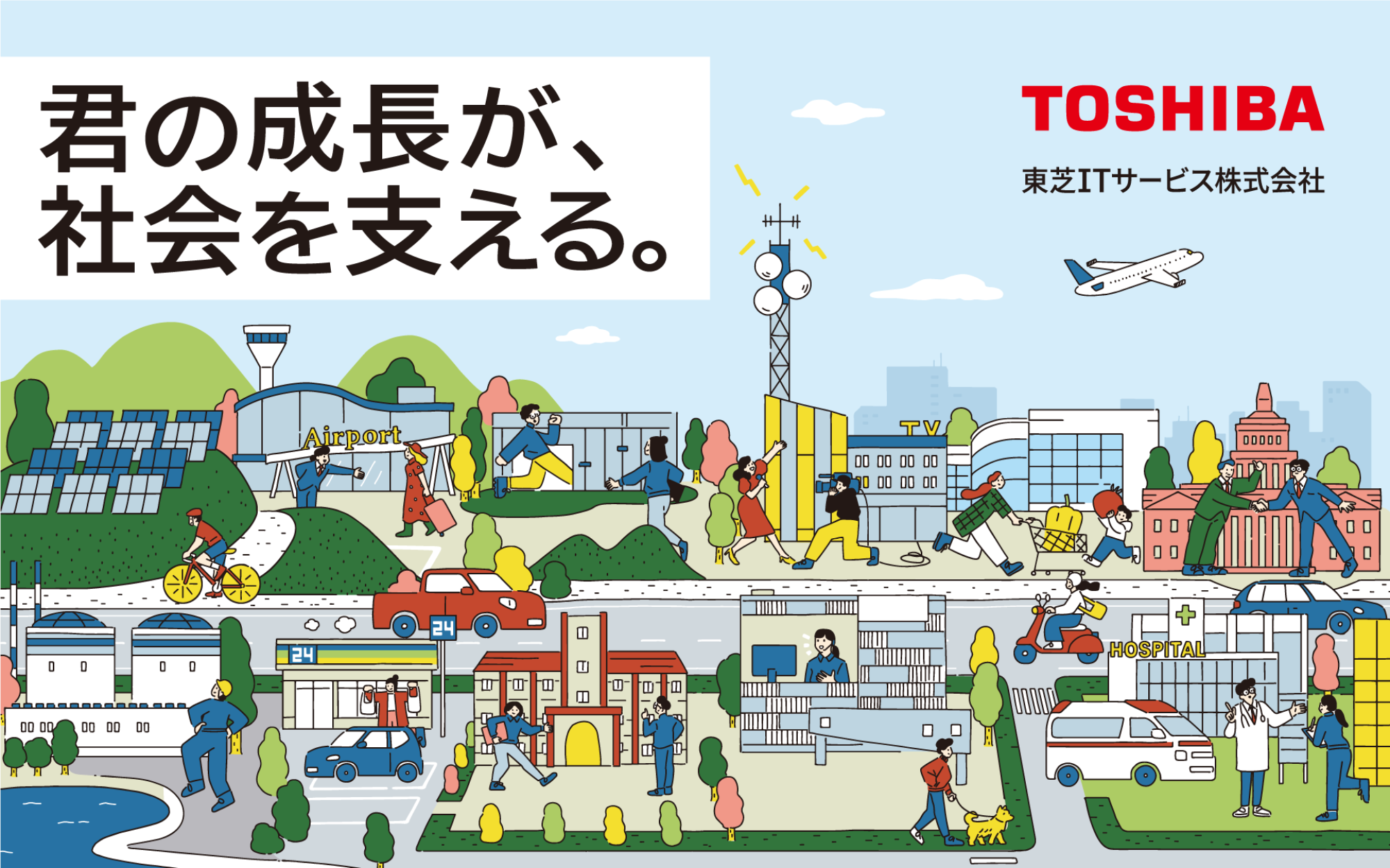 昼夜を問わずビジネスシーンを支え続ける眠らないITシステム。それは皆さんの目に見えないところで休みなく走り続けています。そんな大切なITシステムの企画・設計から構築・展開、管理・運用、保守までシステムのライフサイクル全体を通して価値あるサービスを提供し、効率的にかつ安心してご利用いただくために、整備されたインフラによって、多くのお客様と社会の発展に貢献している東芝グループの一翼を担うITシステムに関するサービス専門会社です。