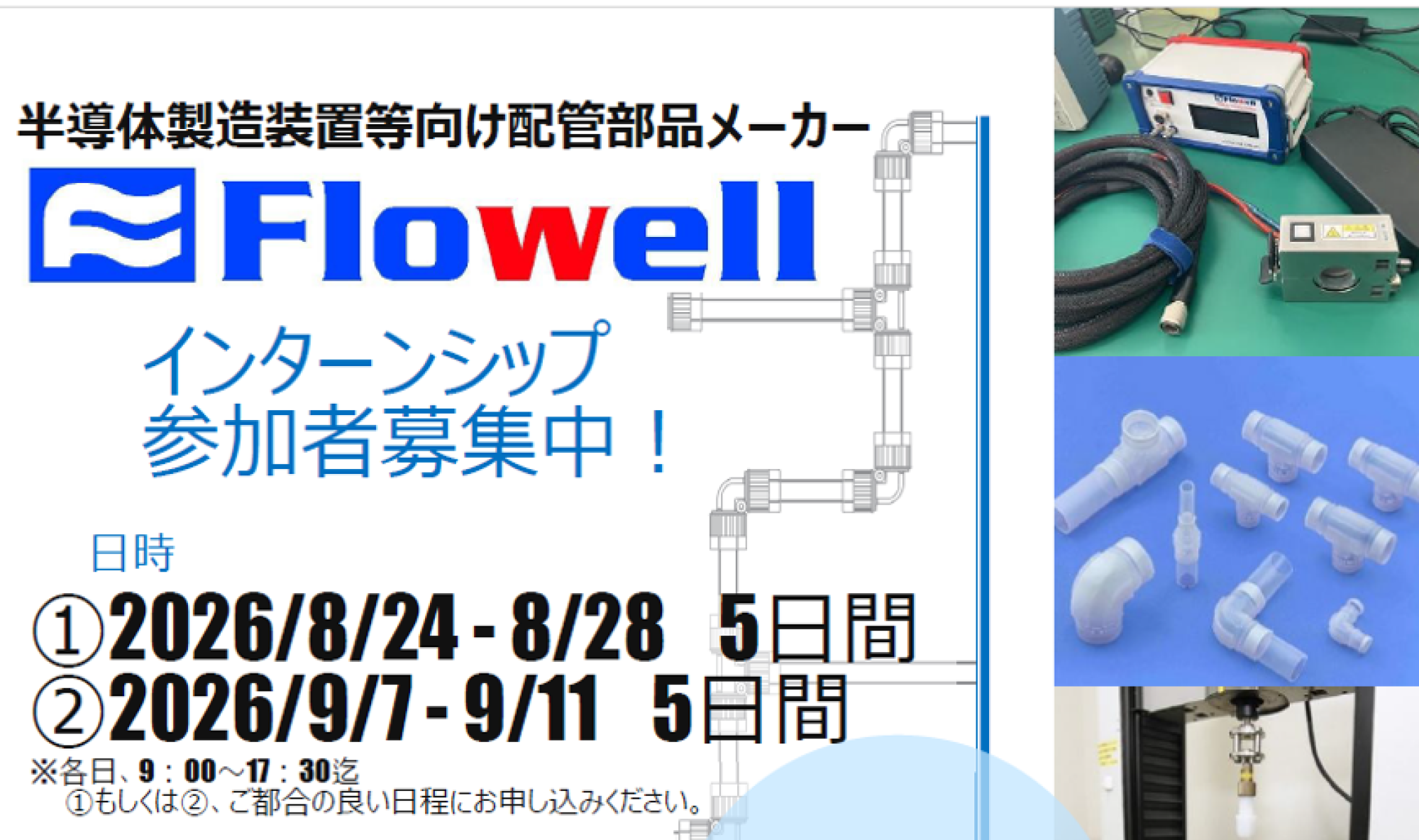 インターン:半導体製造装置用配管部品メーカーFlowell 機器開発業務