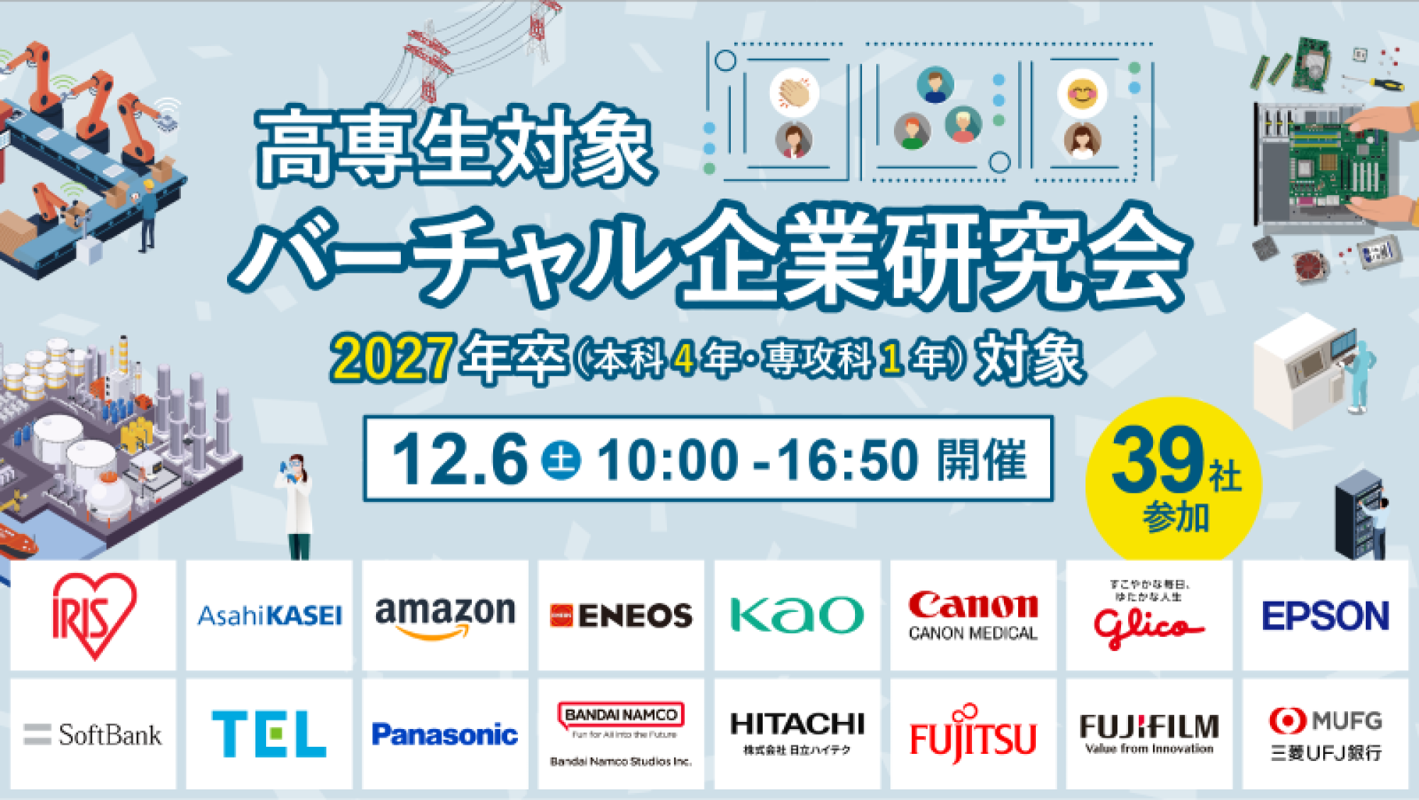 【27卒向け】高専生対象のバーチャル企業研究会★大手企業中心に39社参加★