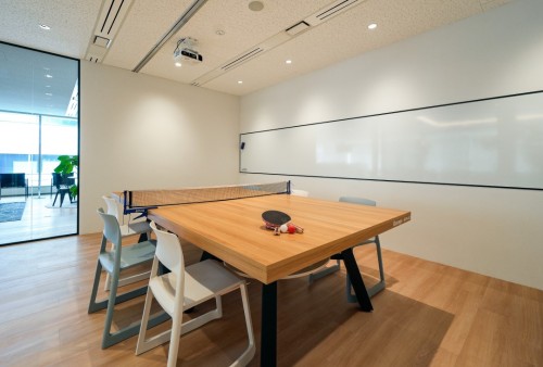 社内の会議テーブルは卓球台に早変わり!昨年末には卓球大会を開催しました。上位入賞と景品ゲットを目指すべく、自主トレするスタッフも!